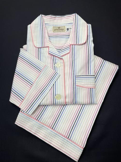 婦人 多色ストライプ ピンクパイピング (M)