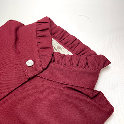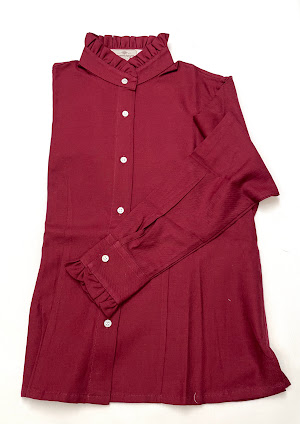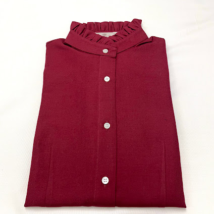 婦人 カシミヤ混衿袖フリル付きスタンドカラーワインレッド(M)